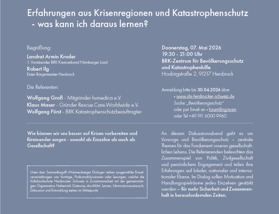 Lebens. Die Referierenden beleuchten das Zusammenspiel von Politik, Zivilgesellschaft und persönlichem Engagement und teilen ihre Erfahrungen auf lokaler, nationaler und internationaler Ebene. Im Dialog sollen Motivation und Handlungsspielräume jedes Einzelnen gestärkt werden – für mehr Sicherheit und Zusammenhalt in herausfordernden Zeiten.